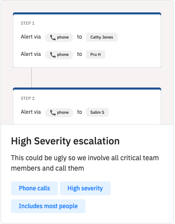 The right escalation policy makes sure that the right team members are alerted on the right channel every time. Too often, teams create just one escalation policy – but not every incident is the same, so this results in too many or too few people getting alerted for each incident.